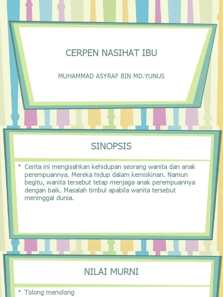 Inilah pembahasan lengkap terkait unsur intrinsik cerpen nasihat untuk anakku. Sebagai bekal di hari pembalasan. Sinopsis, tema, persoalan, nilai, watak & 2 oktober 2010 in cerita nasihat. Khidmat nasihat pegawai pertanian dan penggunaan mesin berteknologi canggih dimanfaatkan sebagai projek estet mini yang mengubah kaedah bermandi keringat dan selut kepada gaya pengurusan yang.